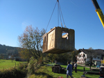 | Referenzprojekt: Umsiedelung eines alten Bienenhauses per Autokran und Tieflader |